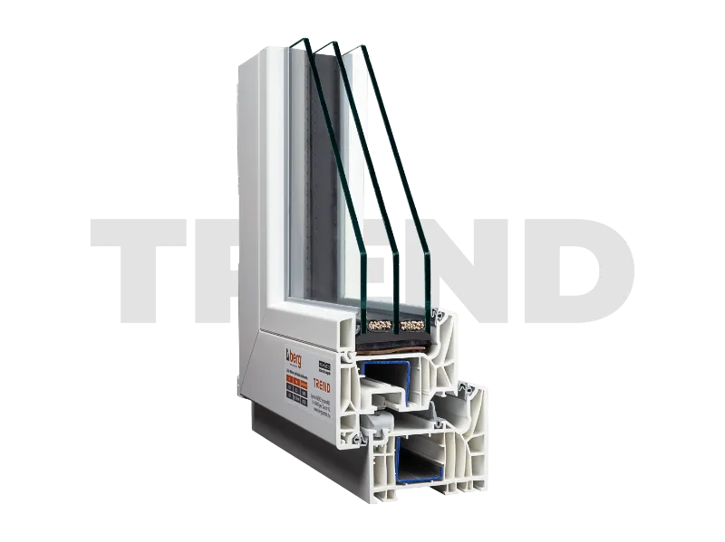 A Berg Trend 82 ablakrendszerrel energetikai szempontból a leghatékonyabb ablakok állíthatók elő. A 82 mm-es profilon belül, a legmagasabb 7 zárt légkamra kialakításával kiemelkedően jó hőszigetelést érhetünk el. Ezek a műanyag ablakok a legszigorúbb elvárásoknak is megfelelnek!